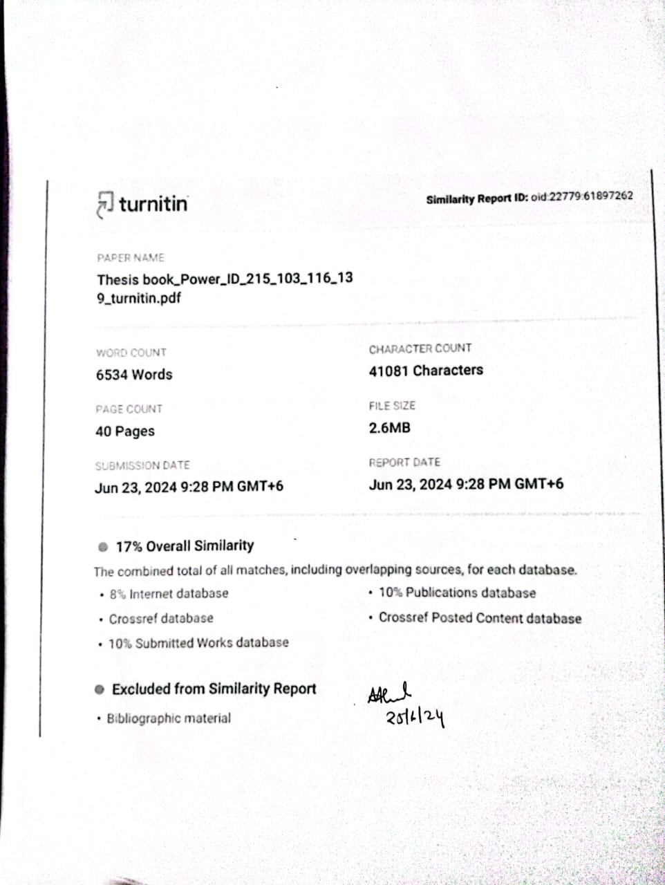 This thesis is submitted in partial fulfillment of the requirement for the degree of Bachelor of Science in Electrical and Electronic Engineering, 2024